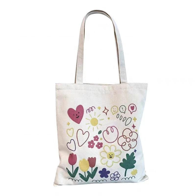 กระเป๋าสะพายไหล่ผ้าแคนวาสทำจากผ้าฝ้ายโพลีเอสเตอร์พิมพ์ลายตัวอักษรแบบเรียบง่ายสำหรับนักเรียนนักศึกษาใช้ในโรงเรียน