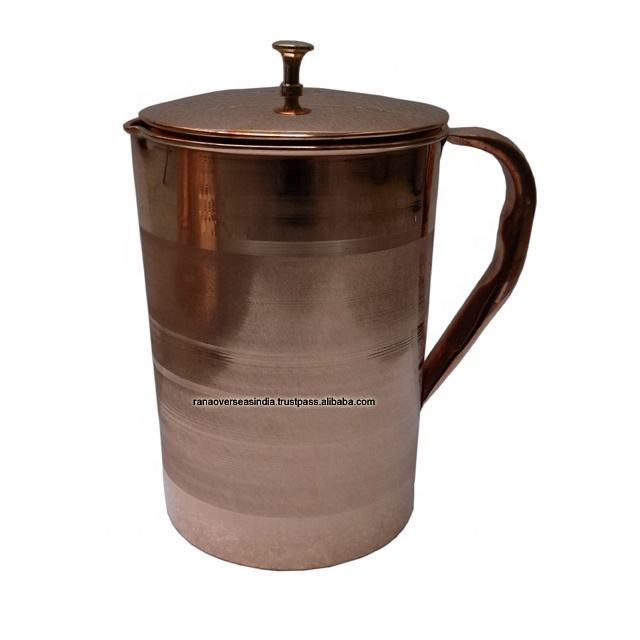 เหยือกทองแดงแท้ทำมือเรียบง่ายพร้อมฝาปิดสำหรับเก็บน้ำดื่ม เหมาะสำหรับใช้ในบ้าน โรงแรม และร้านอาหาร