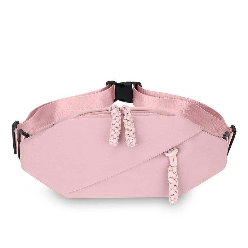 กระเป๋าคาดหน้าอกสไตล์เกาหลีเรียบง่ายสำหรับผู้หญิง กระเป๋าสะพายไหล่กีฬาไนลอนกันน้ำสีขาว สายสะพายเดี่ยว ปิดด้วยซิป