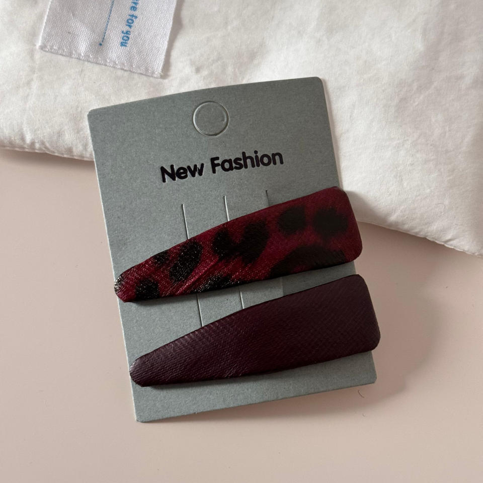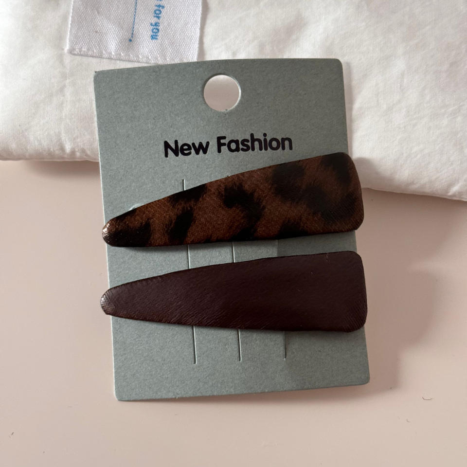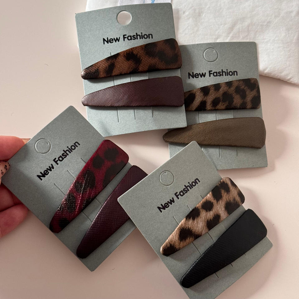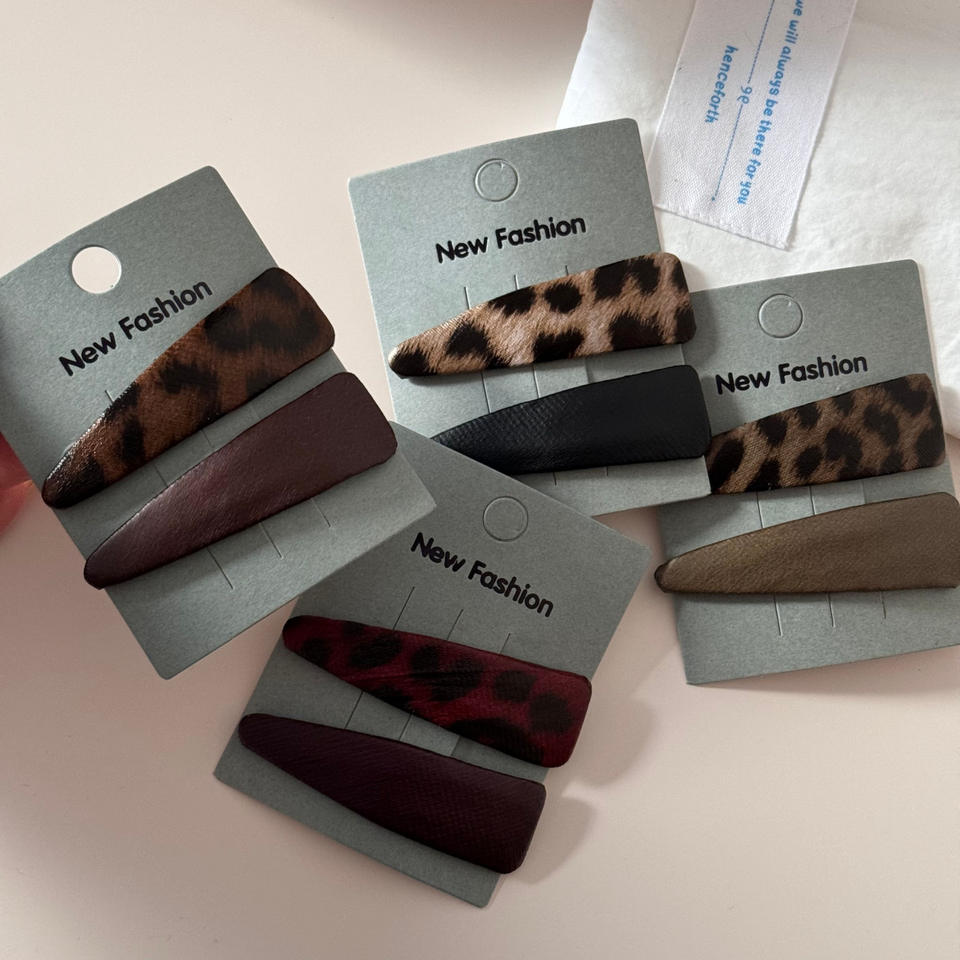 กิ๊บติดผมรูปสามเหลี่ยมลายเสือดาวเรียบง่าย กิ๊บหนีบผมด้านข้างทำจากหนังและผ้า แฟชั่นสำหรับผู้หญิง เครื่องประดับผมสุดหรู