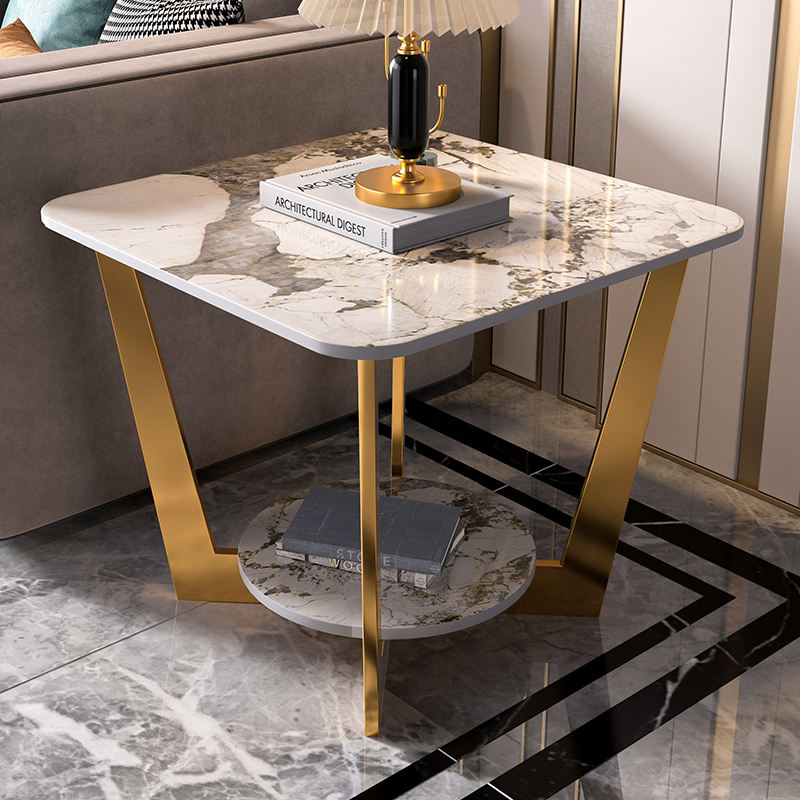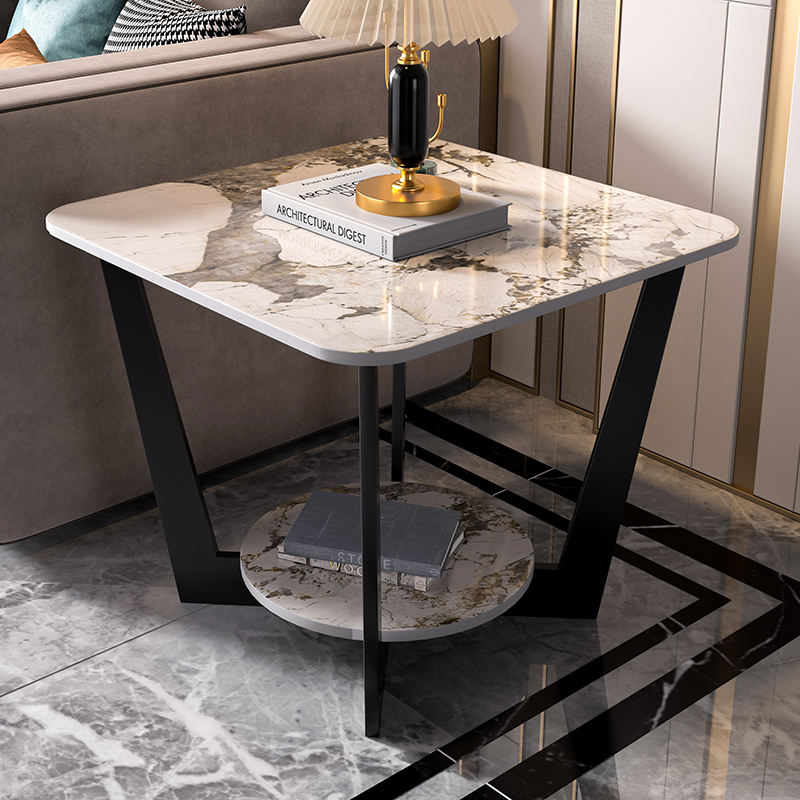 โต๊ะกาแฟแผ่นหินหรูหราเรียบง่ายสำหรับห้องนั่งเล่นห้องนอนระเบียงที่เก็บของข้างเตียงโต๊ะข้างเตียง