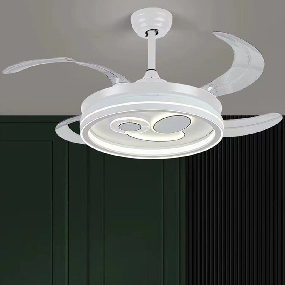 พัดลมเพดาน LED พร้อมรีโมทคอนโทรล ดีไซน์ทันสมัย แผ่นอะคริลิกหนา สำหรับห้องนั่งเล่น แบบซ่อนใบพัด รับประกัน 5 ปี ให้แสงอบอุ่น