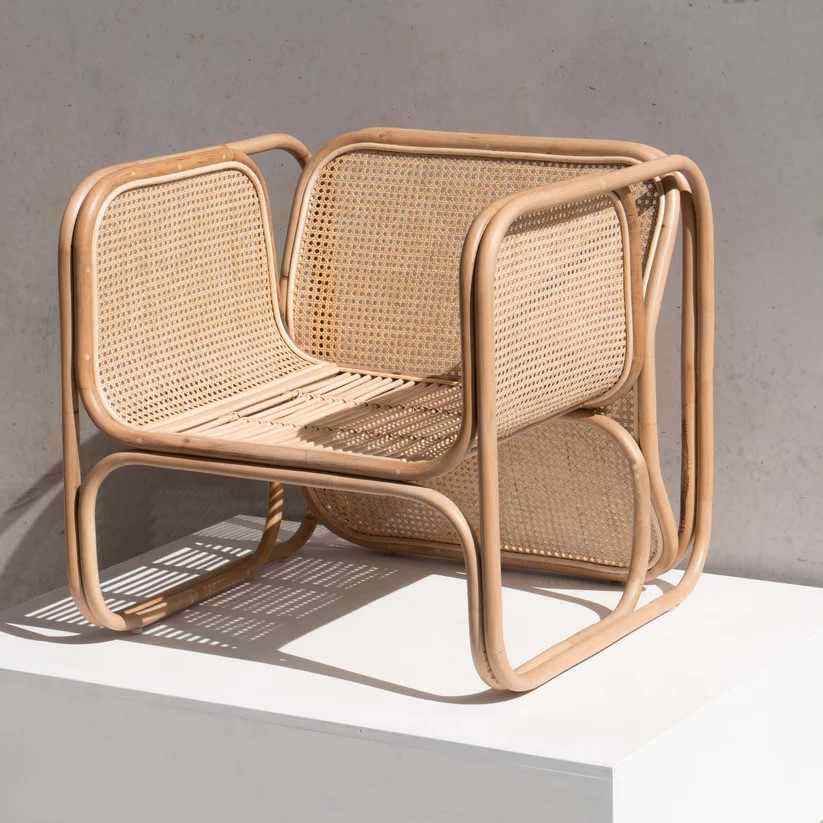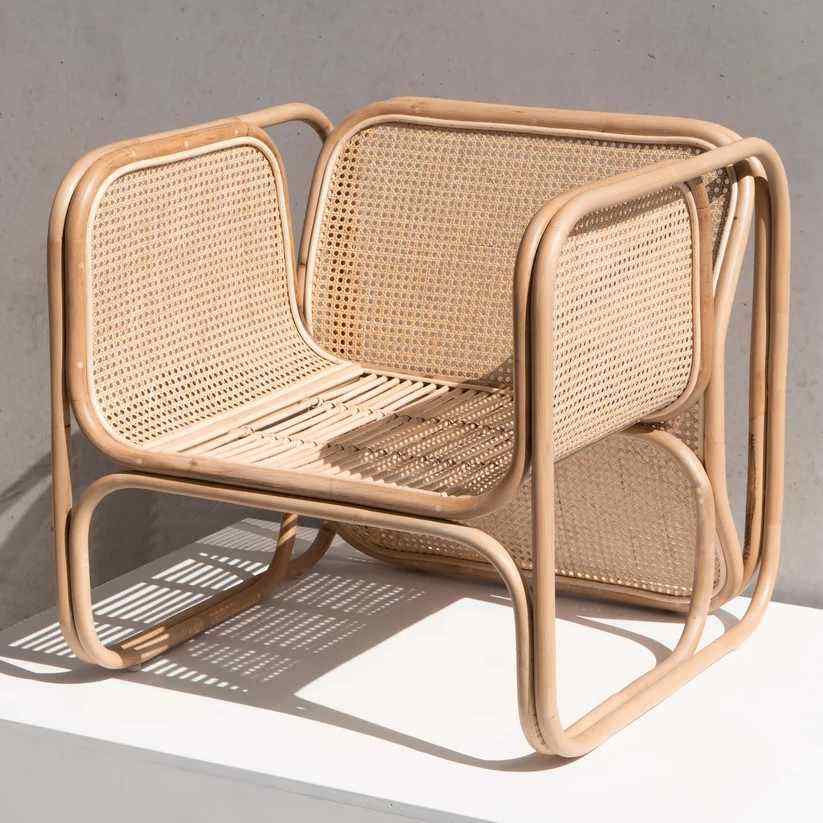 เก้าอี้เลานจ์ลานระเบียงสวนสไตล์นอร์ดิกแบบเรียบง่ายที่เท้าแขนทำจากไม้หวาย