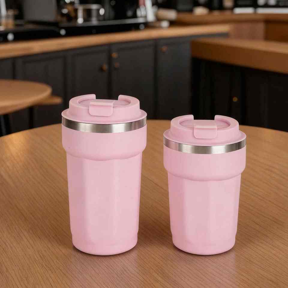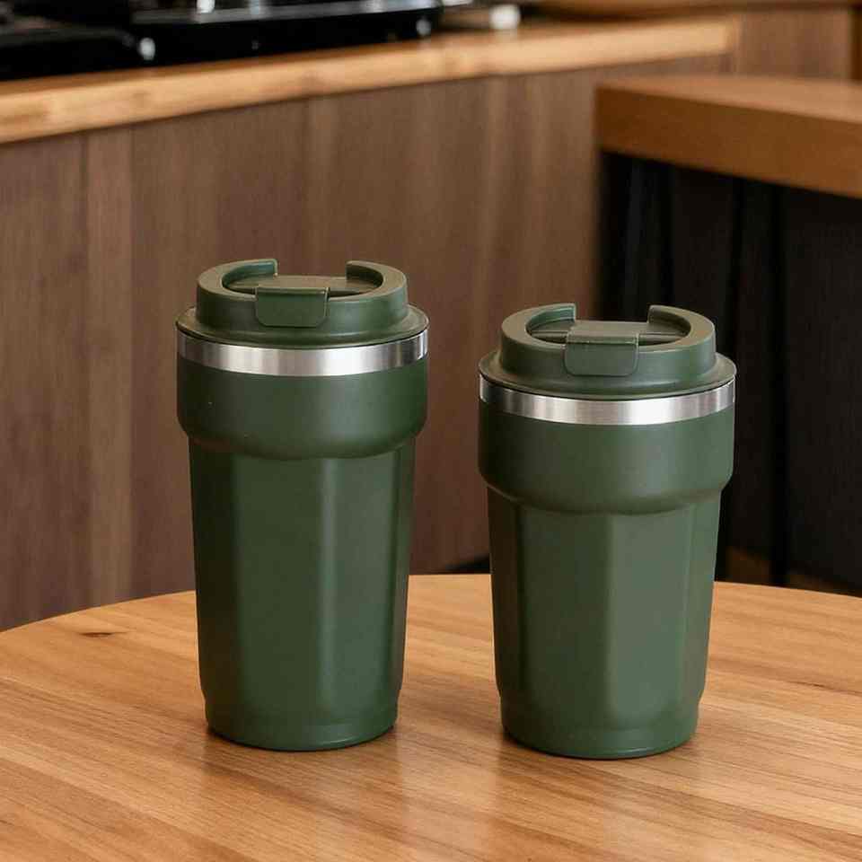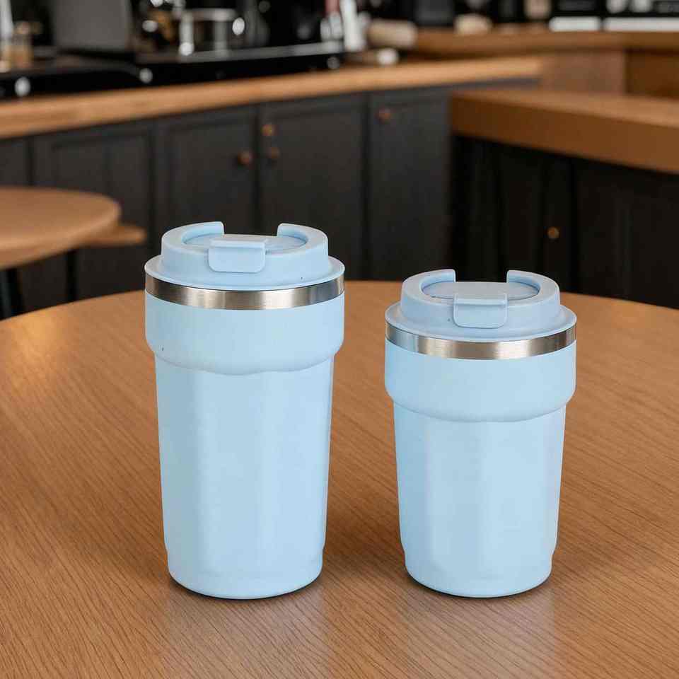 แก้วกาแฟสแตนเลสทรงแปดเหลี่ยมเรียบง่าย ดีไซน์ทันสมัย ฝาปิดแบบพลิก ป้องกันการรั่วซึม พกพาสะดวก พร้อมฉนวนกันความร้อน