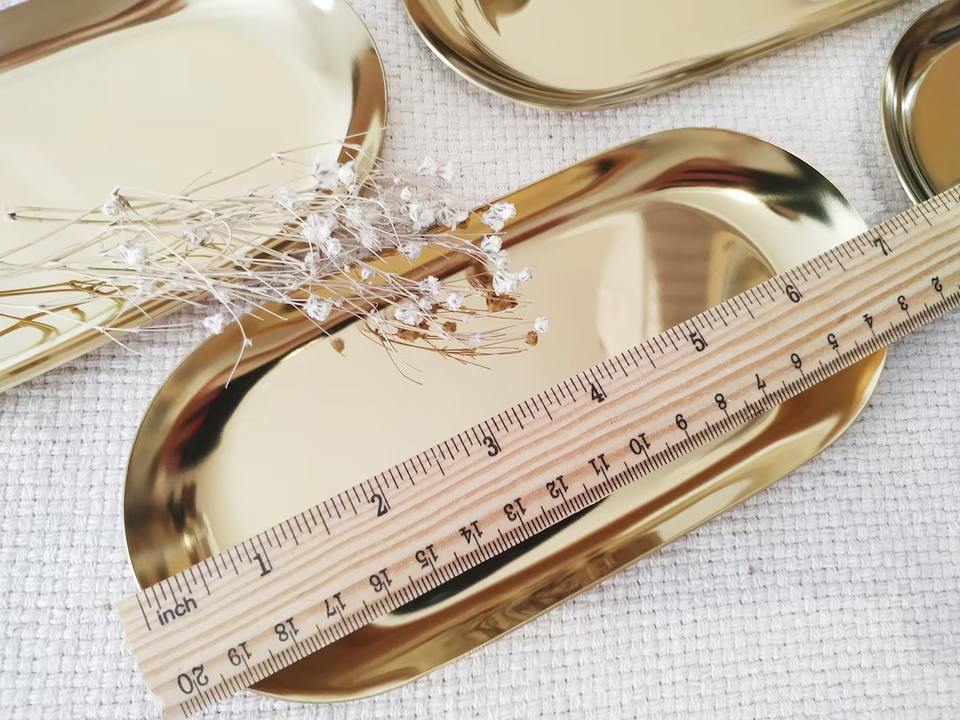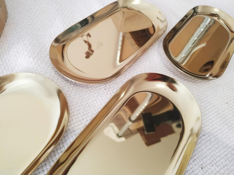 ถาดรูปไข่เรียบง่ายสีทอง เหมาะสำหรับเสิร์ฟเครื่องดื่มประจำวัน ร้านกาแฟ ร้านอาหาร เสิร์ฟน้ำแขก และใช้ตกแต่งโต๊ะเครื่องแป้ง