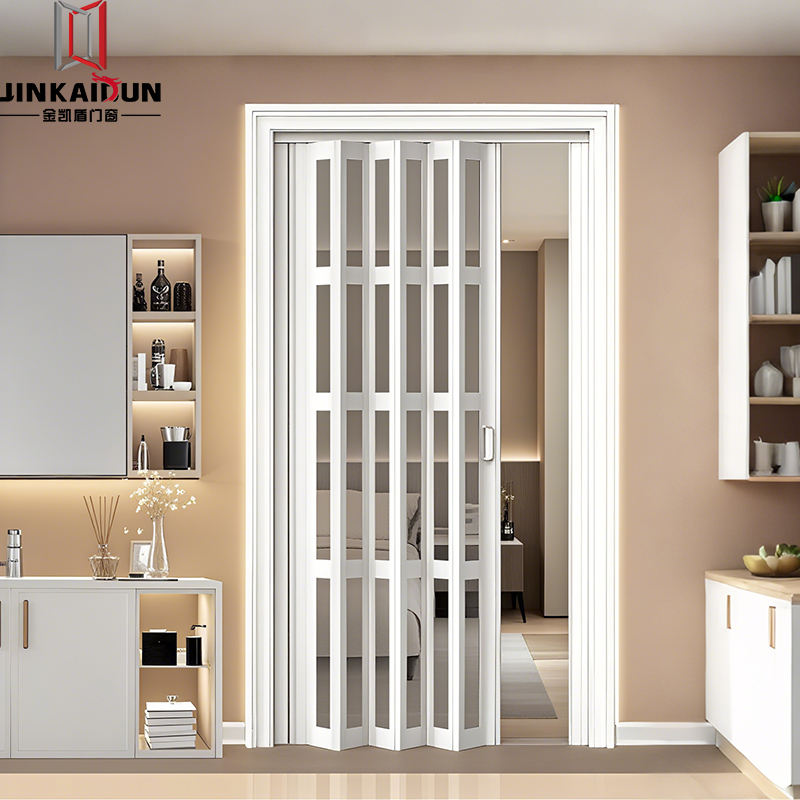 ประตูพีวีซีแบบพับเลื่อนเรียบง่ายสำหรับใช้ภายในอาคาร เชื่อมต่อแก๊สในครัวแบบซ่อน ฉากกั้นห้องน้ำสำหรับห้องนั่งเล่น ยอดนิยมในห้างสรรพสินค้า