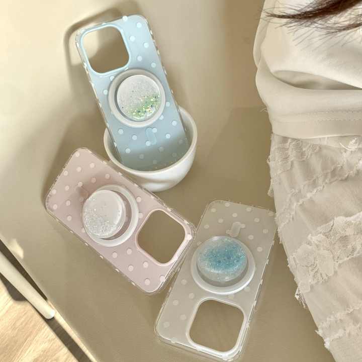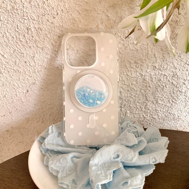 Simple Polka Dot Quicksand Magnetic Stand Case For iPhone 17 Pro Max 16 15 14 Double Layer Cute Women Protective Cover