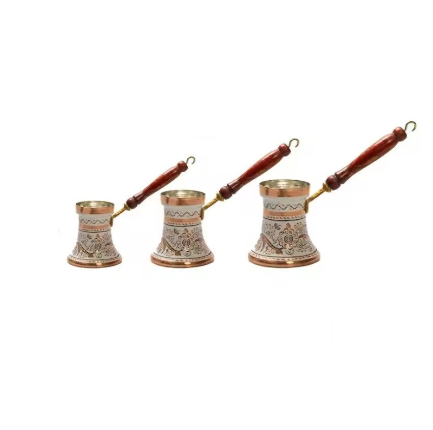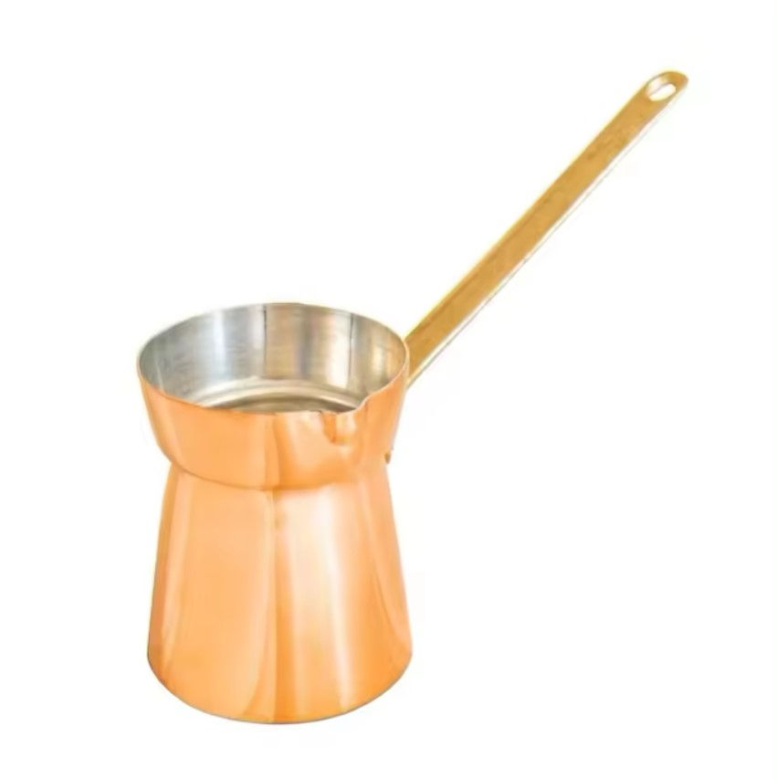 กาต้มกาแฟทองแดงแท้ทำมือสำหรับครัว คุณภาพพรีเมียม พร้อมด้ามจับไม้ เหมาะสำหรับร้านอาหาร