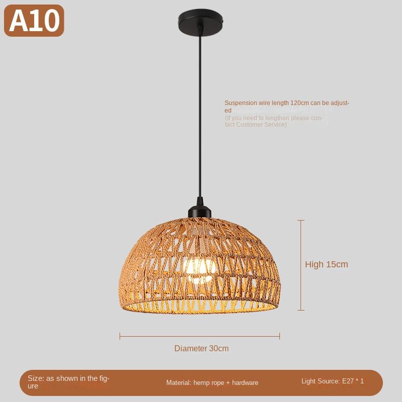 โคมไฟระย้าเชือกกระดาษแบบย้อนยุคทำด้วยมือโคมไฟป่านทรงรีสำหรับห้องนอนห้องนั่งเล่นร้านอาหารดีไซน์หมวกฟางยอดนิยม