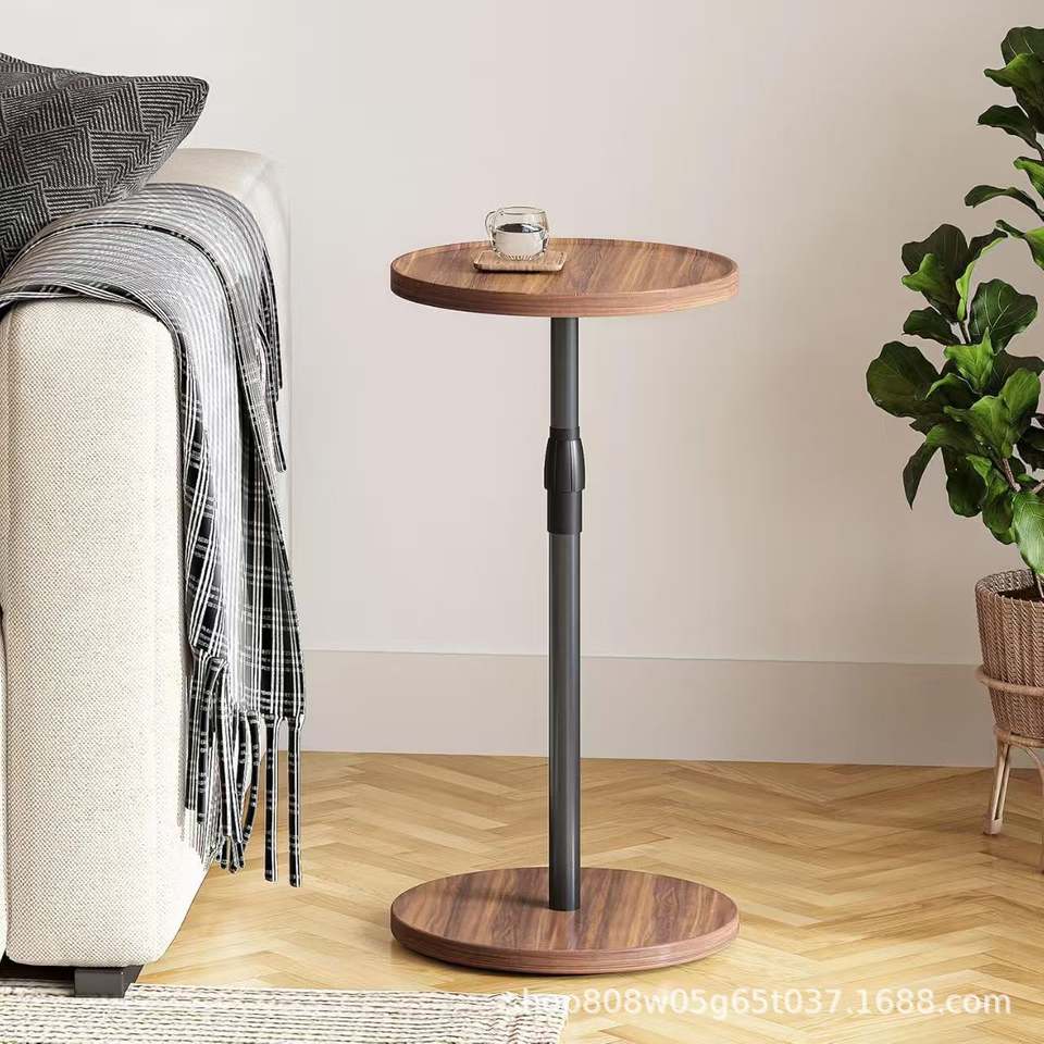 โต๊ะกาแฟทรงกลมแบบเรียบง่าย ปรับความสูงได้ ตกแต่งด้วยไม้สไตล์เรโทร โต๊ะข้างสำหรับห้องนั่งเล่นหรือห้องนอน ใช้กับโซฟาได้