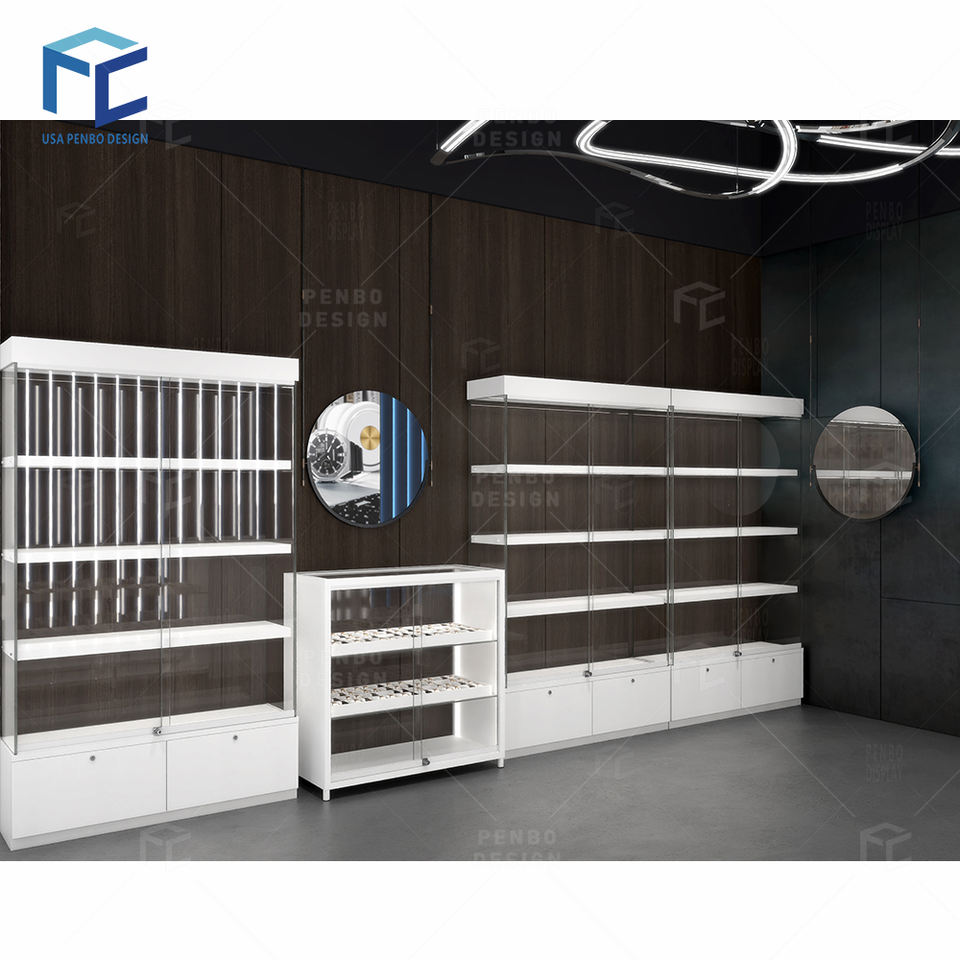 ตู้โชว์ดิจิทัลหลายชั้นแบบกำหนดเองสำหรับนาฬิกา สร้อยคอ จอแสดงผลร้านค้าปลีกแบบเรียบง่ายสำหรับห้างสรรพสินค้า แบรนด์ PENBO รับผลิตแบบ ODM/OEM