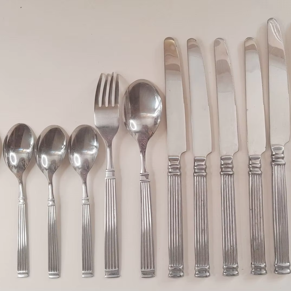 ชุดช้อนส้อมเงินเคลือบเงาเรียบง่าย เหมาะสำหรับงานจัดเลี้ยง ใช้ในชีวิตประจำวัน สำนักงาน โรงอาหาร ร้านกาแฟ และรับประทานอาหารที่บ้าน จากอินเดีย