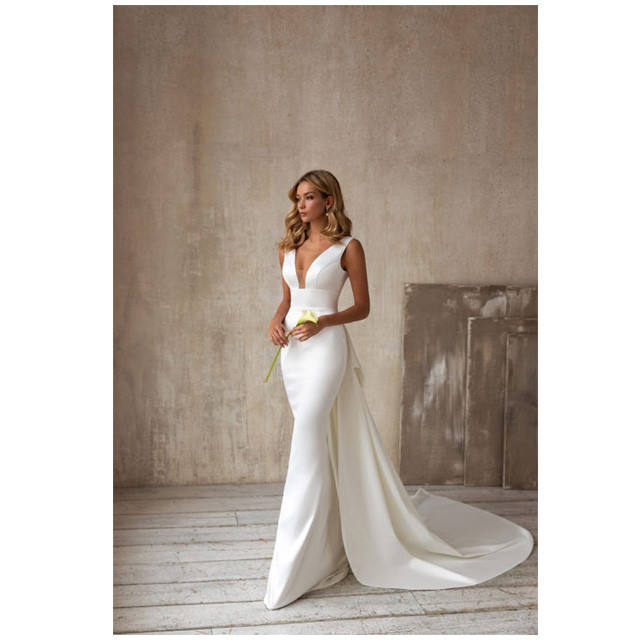 Simple Sleeveless With Detachable Tail Mermaid Wedding Dresses