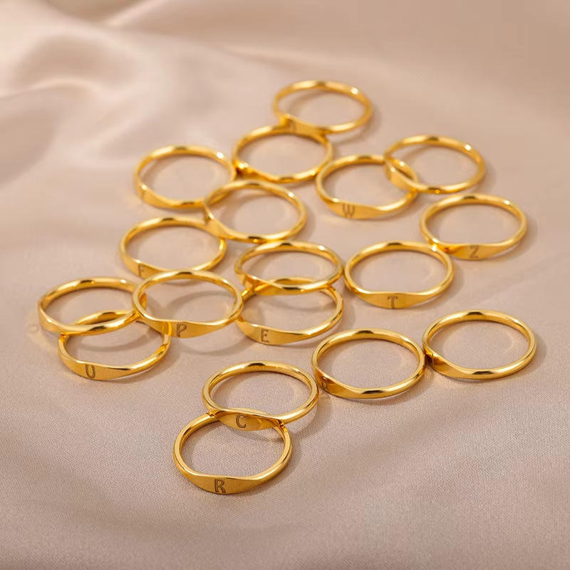แหวนทองสแตนเลสแบบธรรมดา A B C D E F G H I J K L M N O P Q R S T U V X Y Z แหวนตัวอักษร26ตัวสำหรับผู้หญิง