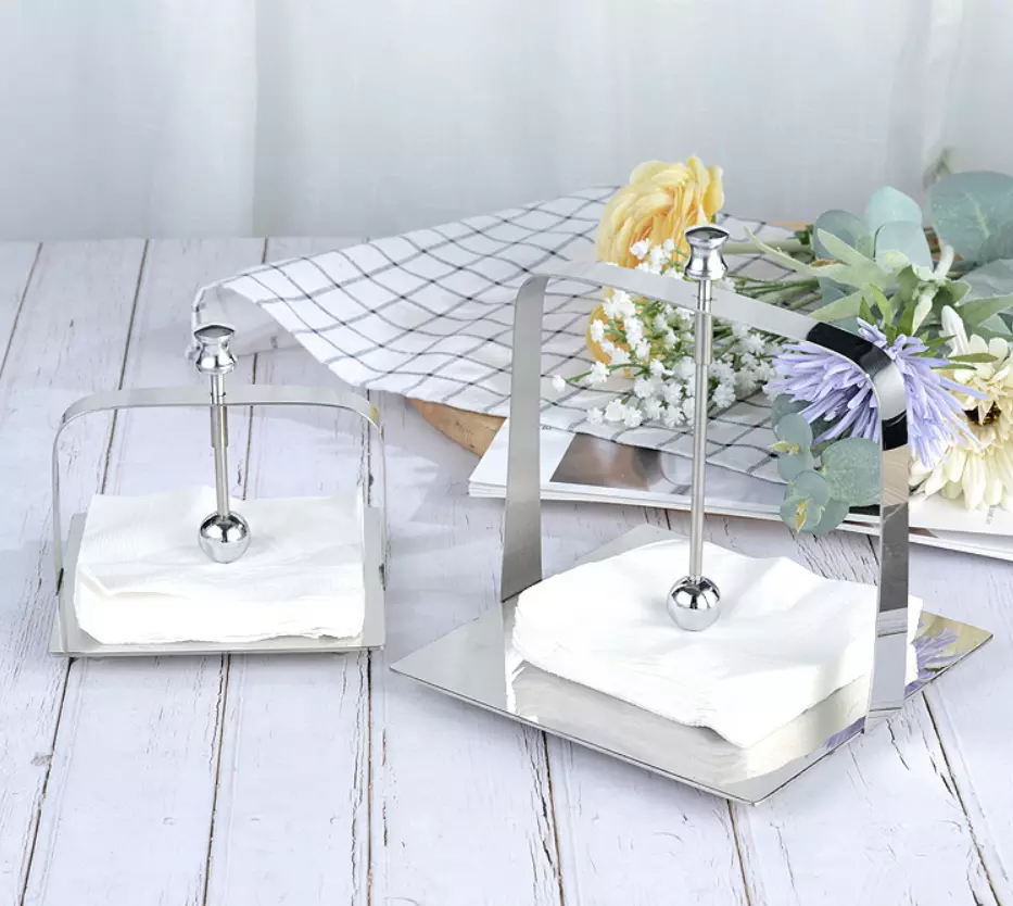 ชั้นวางผ้าขนหนูสแตนเลสแบบง่ายที่ใส่ทิชชู่ที่แขวนผ้าเช็ดปากโลหะ