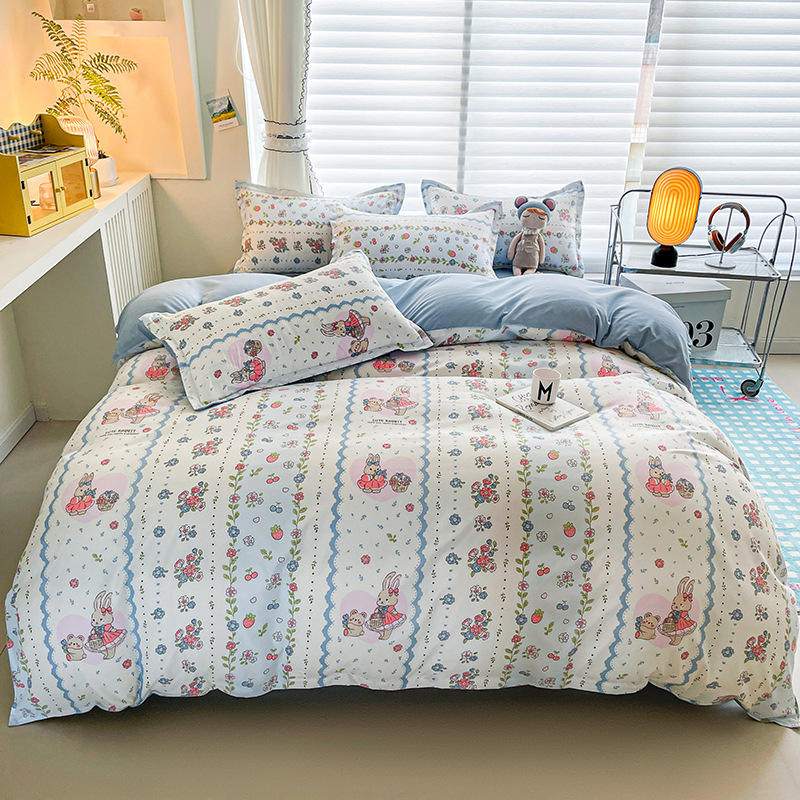 ผ้าคลุมเตียงผ้าฝ้ายว่านหางจระเข้สไตล์เรียบง่ายชุดผ้าคลุมเตียงลายทางเรขาคณิตลายสก๊อตสำหรับนักเรียนบ้านสี่ชิ้นสำหรับผู้ชายสามชิ้นสำหรับ