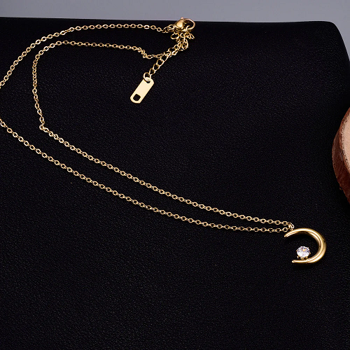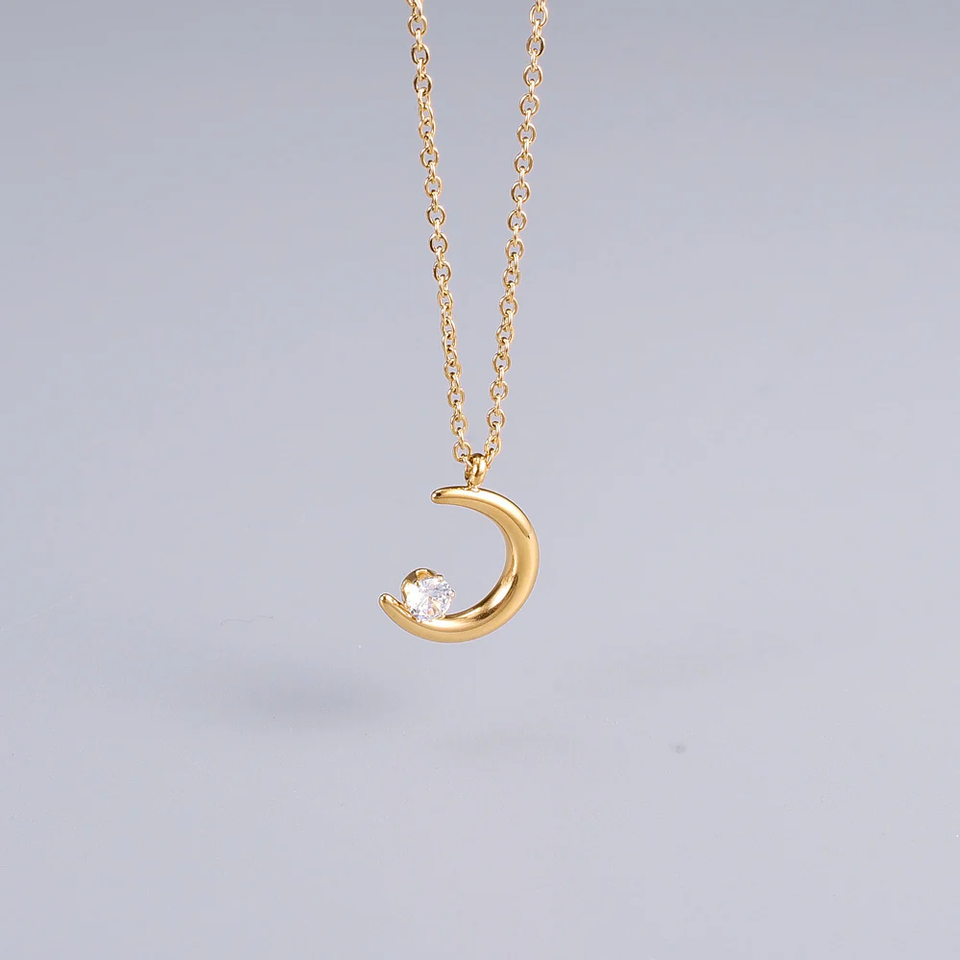 จี้สร้อยคอไทเทเนียมเซอร์คอนรูปดวงจันทร์1ชิ้นสไตล์เรียบง่ายเครื่องประดับแฟชั่นชุบทองสำหรับงานแต่งงานทำจากสแตนเลส