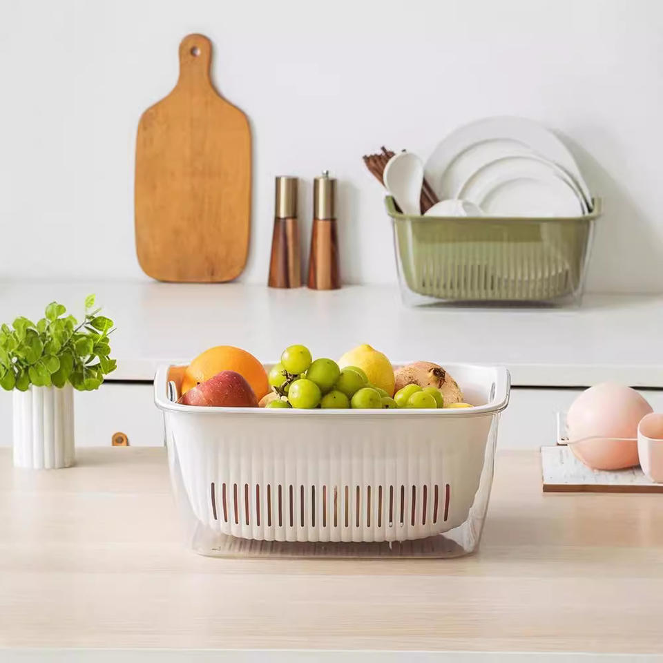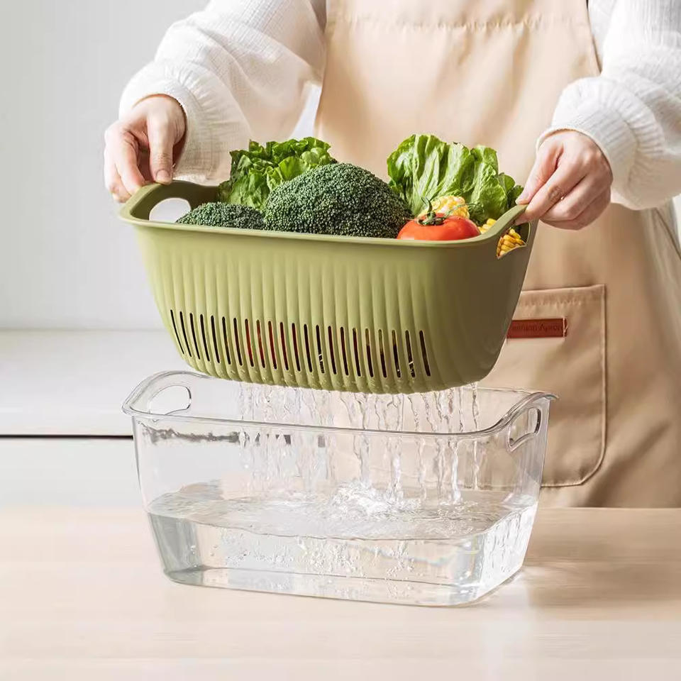 ตะกร้าล้างผักพลาสติกแบบเรียบง่าย ขนาดใหญ่ สำหรับอ่างล้างจาน ตะแกรงกรองผลไม้และข้าว กระชอนครัว