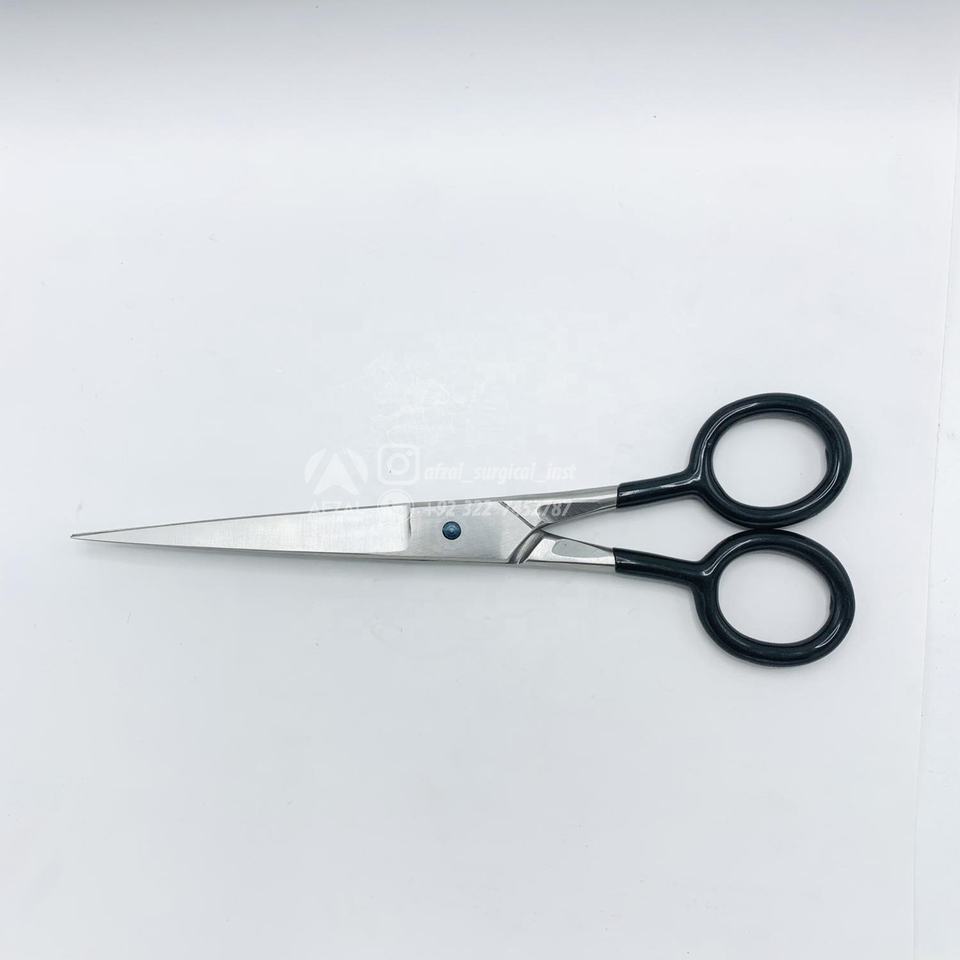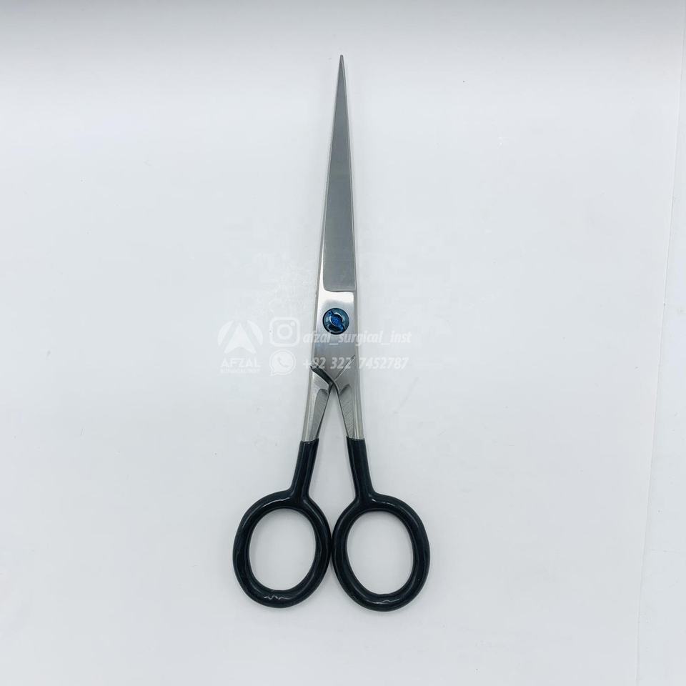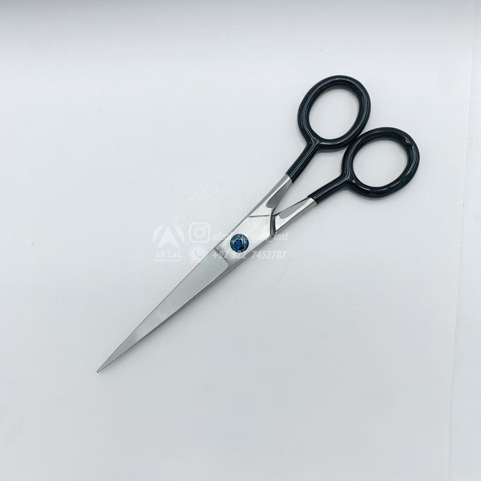 กรรไกรตัดผมสแตนเลสแบบเรียบแหวนสีดำทรงตรงใบมีดคมกรรไกรด้ามจับเหล็กดูแลความงามส่วนบุคคล