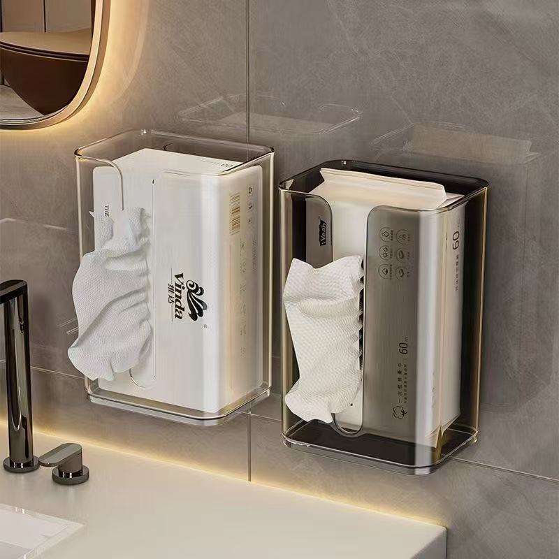 กล่องเก็บของติดผนังสไตล์เรียบง่ายสำหรับกระดาษทิชชู่เช็ดหน้าผ้าเช็ดปากในห้องครัวอุปกรณ์ห้องน้ำติดผนังแบบไม่เจาะรู