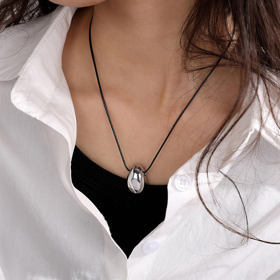 สร้อยคอจี้รูปหยดน้ำเรียบง่าย สแตนเลส สายเชือกสีดำ สร้อยคอแบบ unisex สีทอง สีเงิน มีให้เลือก