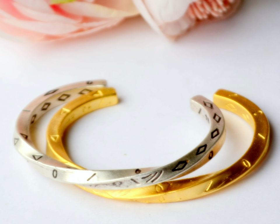 กำไลข้อมือแบบโบโฮชุบเงินบิดเกลียวปรับได้ทุกเพศแบบเรียบง่ายชุบทอง24K ชุบผิวแบบโบราณ