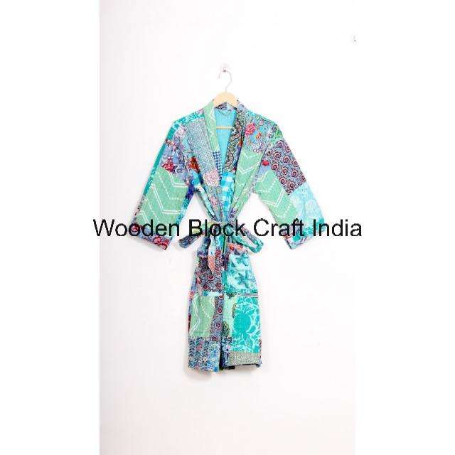 เสื้อคลุมกิโมโนสั้นแบบเรียบง่าย คอวี ระบายอากาศได้ดี ผ้าคันธาสีคราม ผ้าฝ้ายนุ่มสบาย ชุดนอนลำลอง แฟชั่น ใส่สบาย