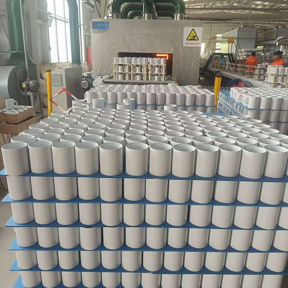 แก้วพอร์ซเลนสีขาวเรียบง่าย 15 ออนซ์ ทรงกลม มีหูจับ เคลือบสำหรับงานซับลิเมชั่น เหมาะสำหรับใช้ในงานส่งเสริมการขาย