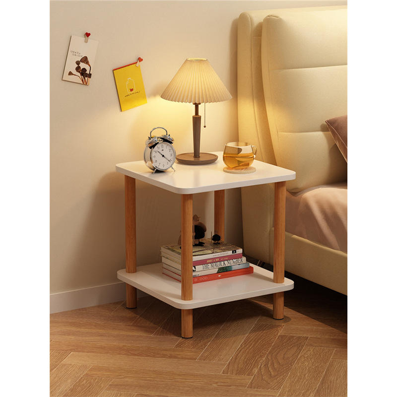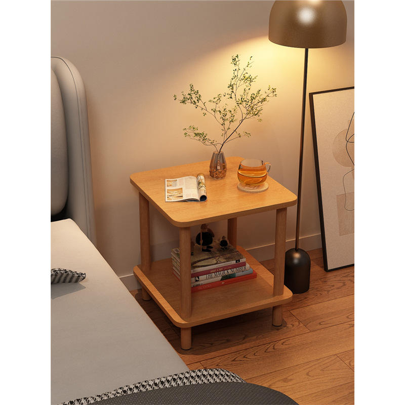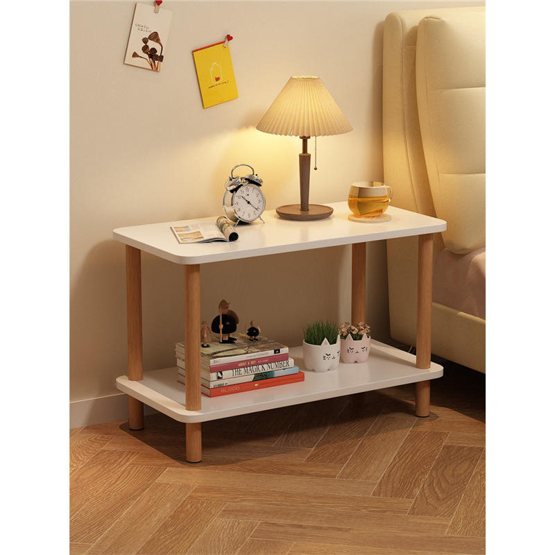 โต๊ะข้างเตียงไม้เรียบง่าย 60x30x50 ซม. โต๊ะข้างเตียงสองชั้นสำหรับห้องนอนเด็ก