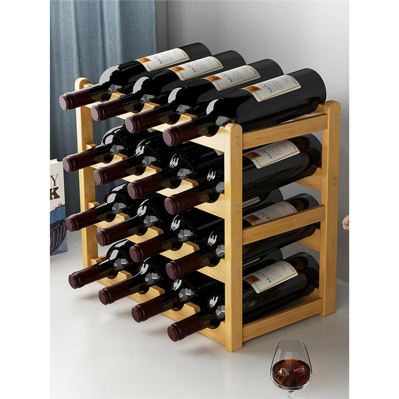 ชั้นวางไวน์ไม้เรียบง่าย 6 ขวด ชั้นวางเก็บของสำหรับบ้าน บาร์ เคาน์เตอร์ ชั้นวางโชว์รูปทรงสี่เหลี่ยมผืนผ้า ของตกแต่งไม้เนื้อแข็ง