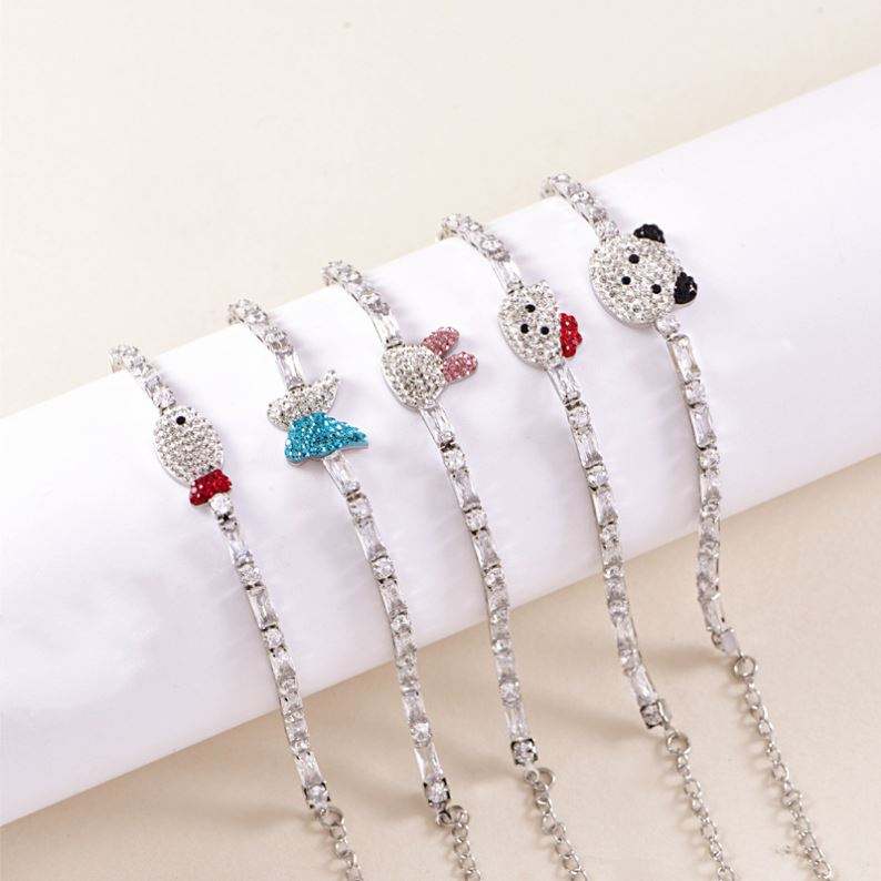 สร้อยข้อมือสแตนเลสรูปสัตว์เซอร์คอนประดับเพชรเต็มรูปแบบแบบเรียบง่ายของขวัญวันเกิดของแฟนสร้อยข้อมือกระต่ายแพนด้าเข้าคู่กันสี