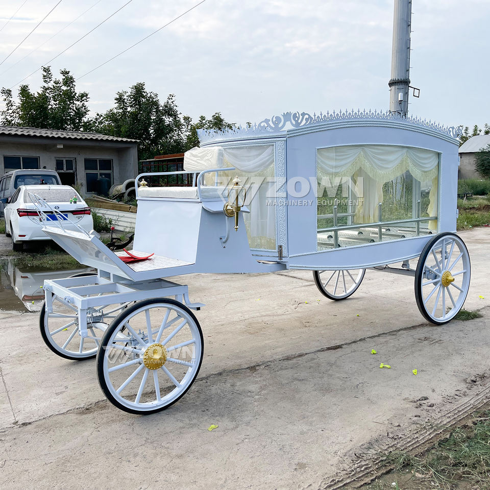 รถสี่ล้อไฟฟ้าสีขาวสำหรับงานศพม้าเรียบง่ายและสง่างามสไตล์ยุโรปย้อนยุค