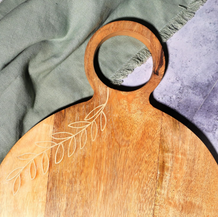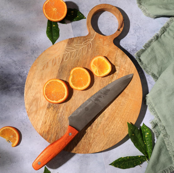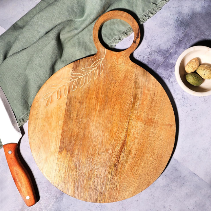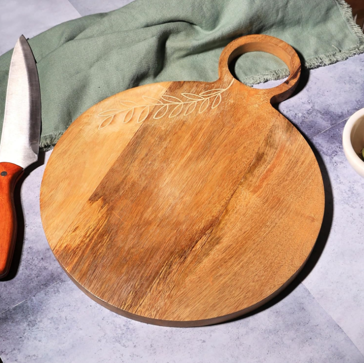 เขียงไม้มะม่วงสีน้ำตาลเรียบง่ายและน่าสนใจสำหรับใช้ในบ้านผักผลไม้พิซซ่าเนื้อชีส2024เขียง