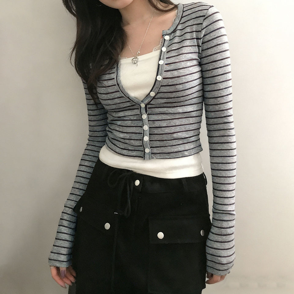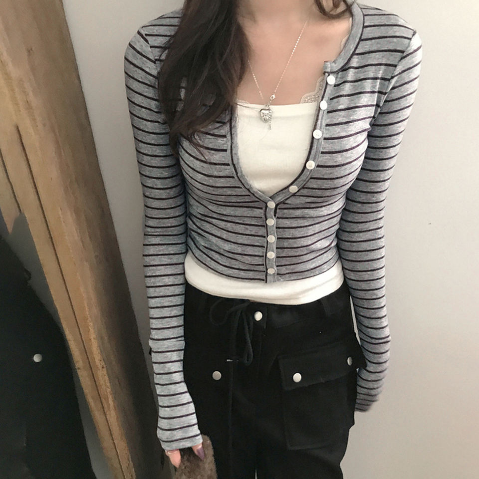 เสื้อยืดแขนยาวลายทางแบบเรียบง่ายและลำลอง ทรงเข้ารูปและกระชับ ดูทันสมัยและใช้งานได้หลากหลาย
