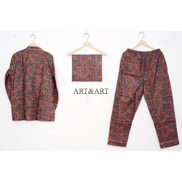 ชุดนอนผ้าฝ้ายลายดอกไม้ ดีไซน์เรียบหรู พิมพ์ลายด้วยมือ สำหรับผู้หญิง ชุดลำลองฤดูร้อนน้ำหนักเบา