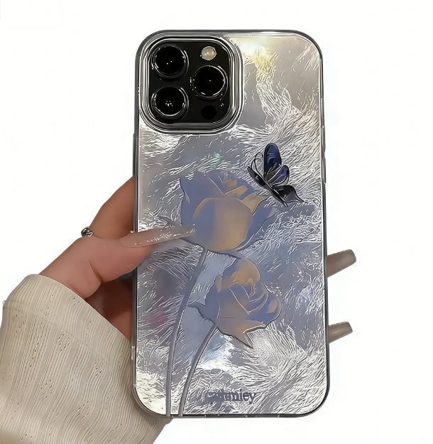 เคสโทรศัพท์ IMD สองชั้นลายผีเสื้อและดอกกุหลาบ เรียบง่ายแต่ทันสมัย เหมาะสำหรับ iPhone, Xiaomi และ Samsung