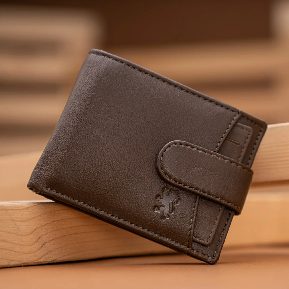 กระเป๋าสตางค์สีน้ำตาลเรียบง่ายที่มีดีไซน์พับได้บางและการเย็บที่ละเอียดใช้ได้ในราคาขายส่ง