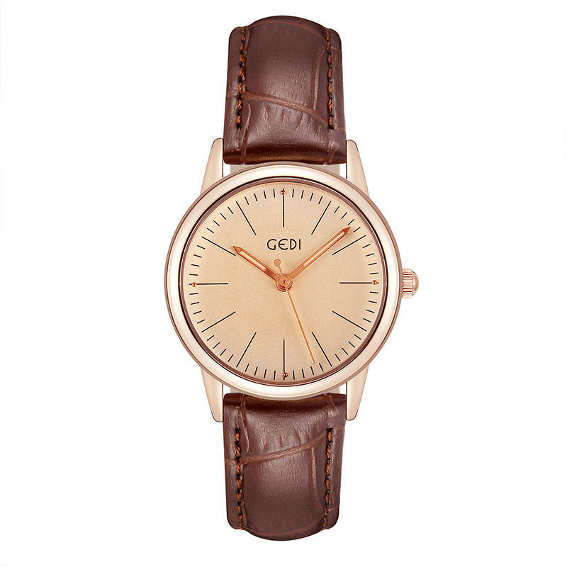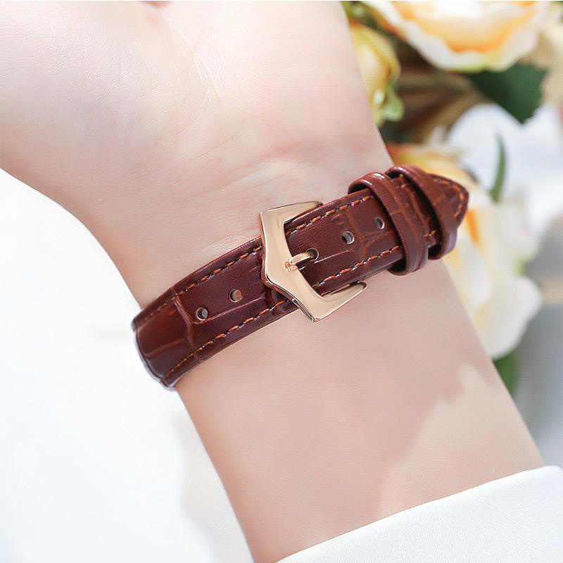 นาฬิกาควอตซ์สายหนังลายไม้ไผ่คลาสสิกเรียบง่ายสำหรับสุภาพสตรีนาฬิกากันน้ำย้อนยุค