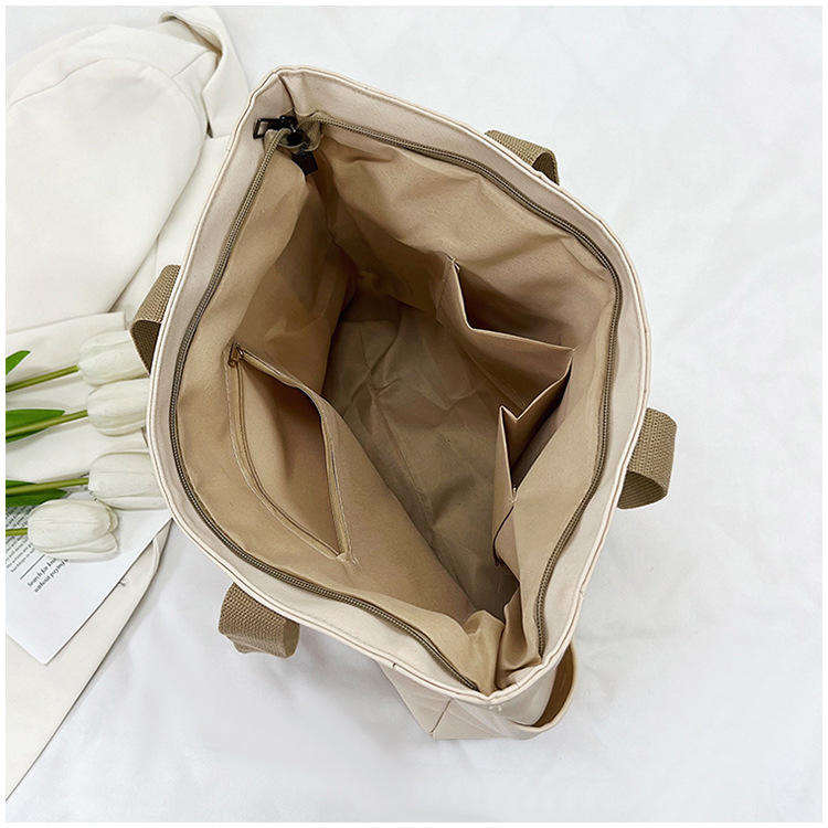 กระเป๋าสะพายไหล่ผู้หญิงขนาดใหญ่เรียบง่าย กระเป๋าถือสีพื้น กระเป๋าผ้าแคนวาสสำหรับเดินทาง
