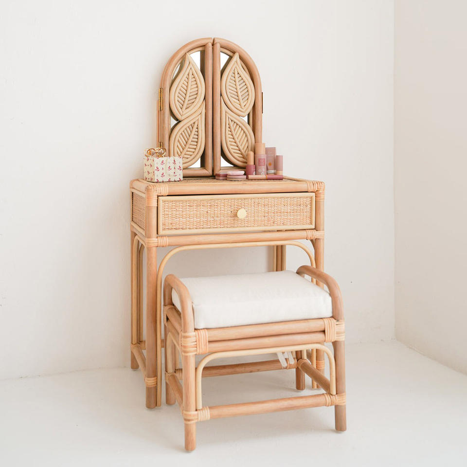 โต๊ะเครื่องแป้งหวายแบบเรียบง่ายสำหรับเด็กตู้เสื้อผ้าโต๊ะเครื่องแป้ง