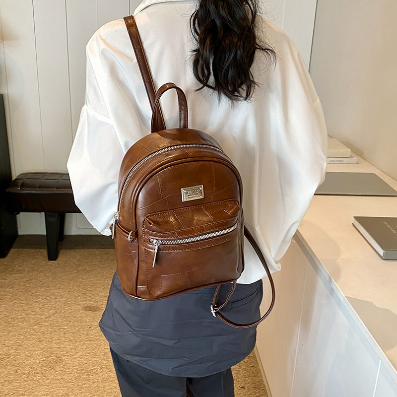 กระเป๋าเป้หนังสีเงินเรียบง่ายพร้อมสายรัดที่สะดวกสบายเป็นสิ่งที่ต้องมีสำหรับการเดินทางเพื่อการพักผ่อน