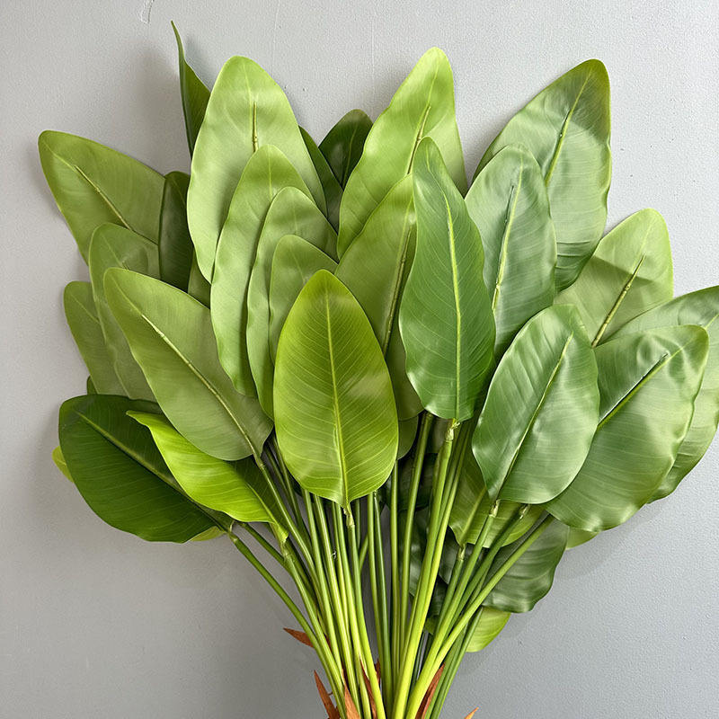 ต้นใบตองจำลองสีเขียวสำหรับตกแต่งสวนฤดูใบไม้ผลิฝน Calla พืชใบลิลลี่สวรรค์ใบนกโรงงานโดยตรง