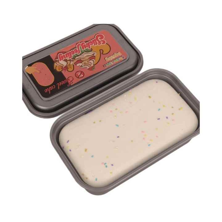 ของเล่นบีบ PU รูปเค้กสี่เหลี่ยมในกล่อง แบบจำลอง บีบแล้วคืนตัวช้า บรรเทาความเครียด เหมาะสำหรับทุกวัย ใช้เป็นของขวัญได้