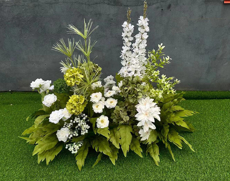 ดอกไม้ประดิษฐ์ใบไม้ปลอมสำหรับงานแต่งงานการจัดแนวถนนในโรงแรมการจัดต้นไม้หญ้าสีเขียวขั้นสูงสุด