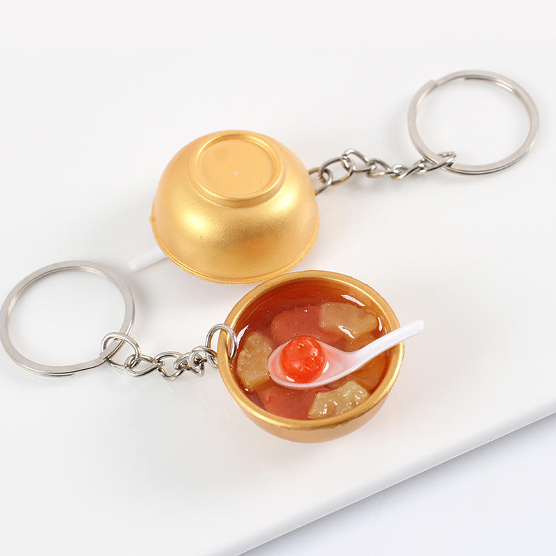 จี้รูปอาหารจำลอง ขนาด 3 ซม. สีทอง ชามเล็ก โมเดลก๋วยเตี๋ยว พวงกุญแจ ตกแต่งกระเป๋า ของเล่นจิ๋วรูปอาหาร ขนมขบเคี้ยว