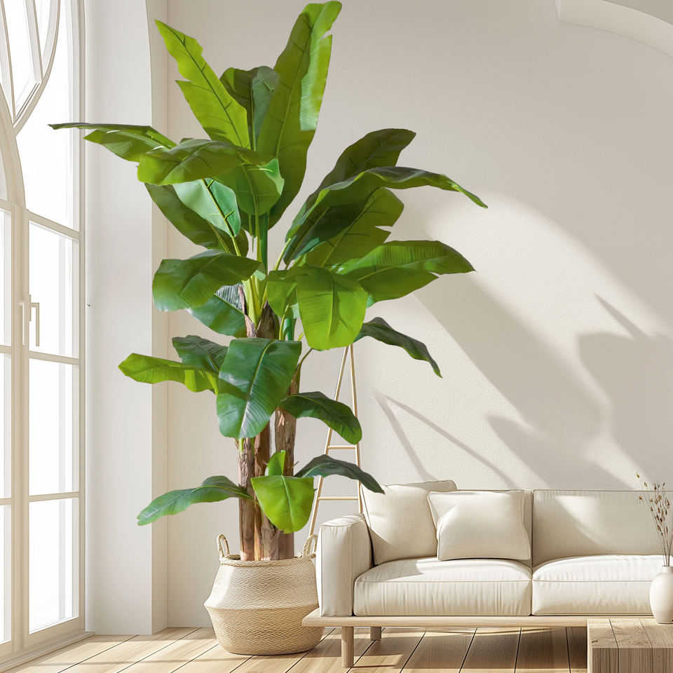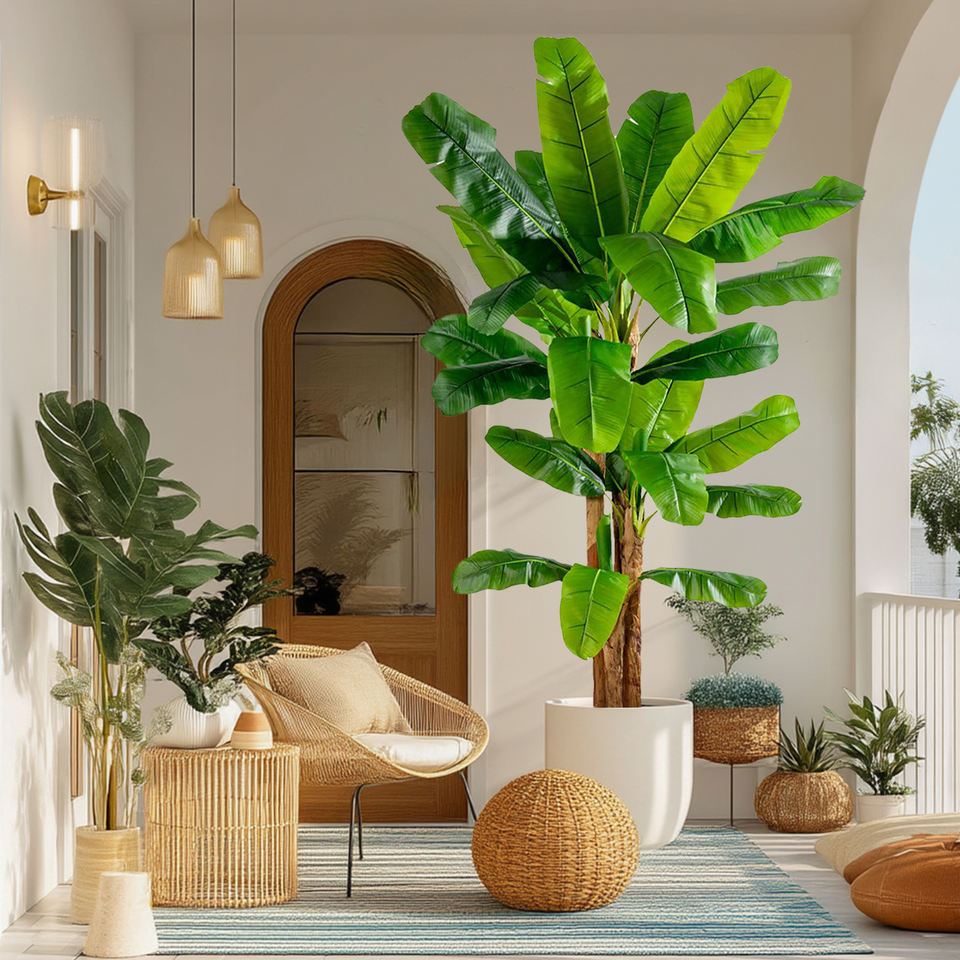 ต้นกล้วยจำลองทำจากพลาสติกที่ปลูกในบ้านกลางแจ้งเหมาะสำหรับใช้ในบ้านหรือสวนงานวันเกิดเป็นมิตรกับสิ่งแวดล้อม