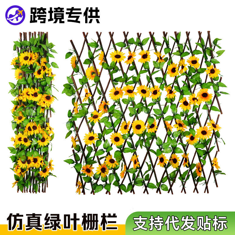 รั้วไม้จำลอง 40 ซม. 70 ซม. 120 ซม. ใบไม้พลาสติกสีเขียว ดอกไม้ประดิษฐ์สำหรับตกแต่งลานบ้าน