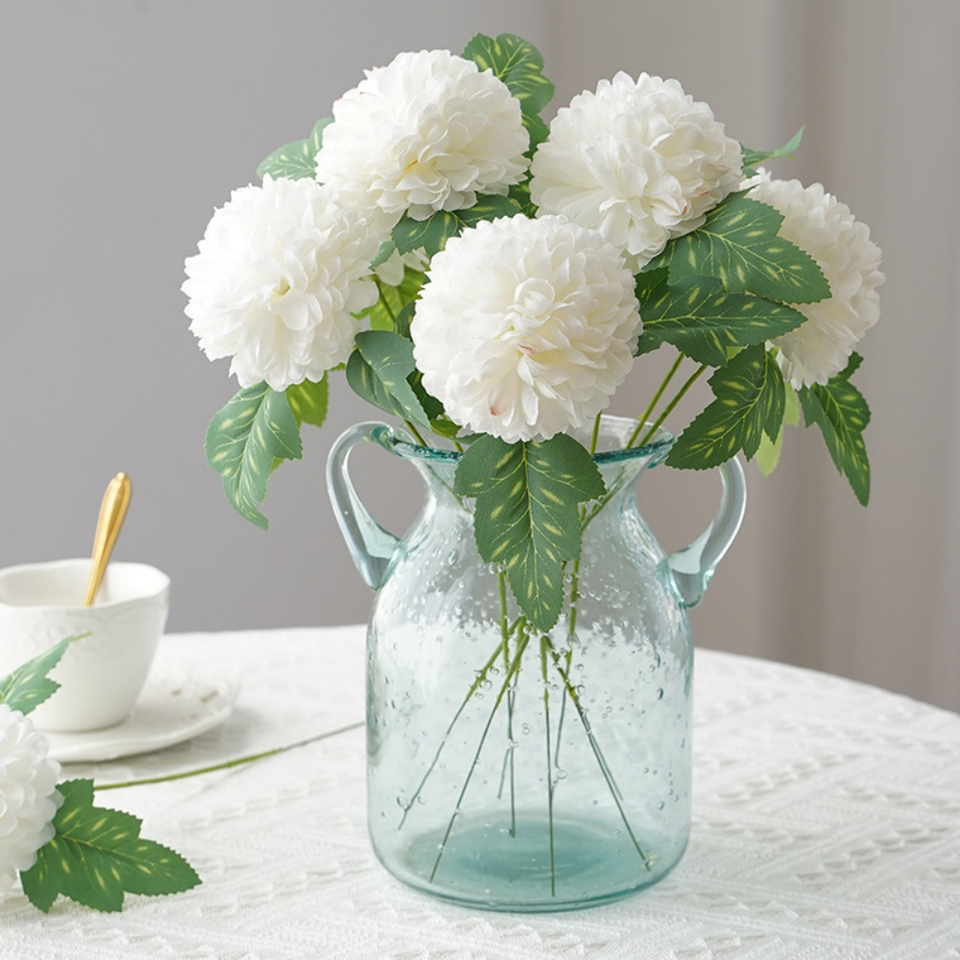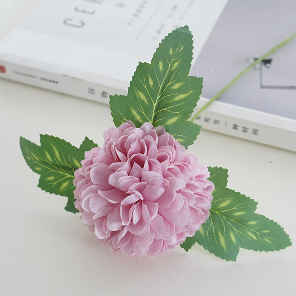 ดอกเดซี่แอฟริกันจำลองและดอกเบญจมาศฟุตบอลพร้อมใบไม้ ดอกแดนดิไลออน ดอกเบญจมาศทรงกลม สำหรับตกแต่งบ้าน งานแต่งงาน และงานจัดดอกไม้