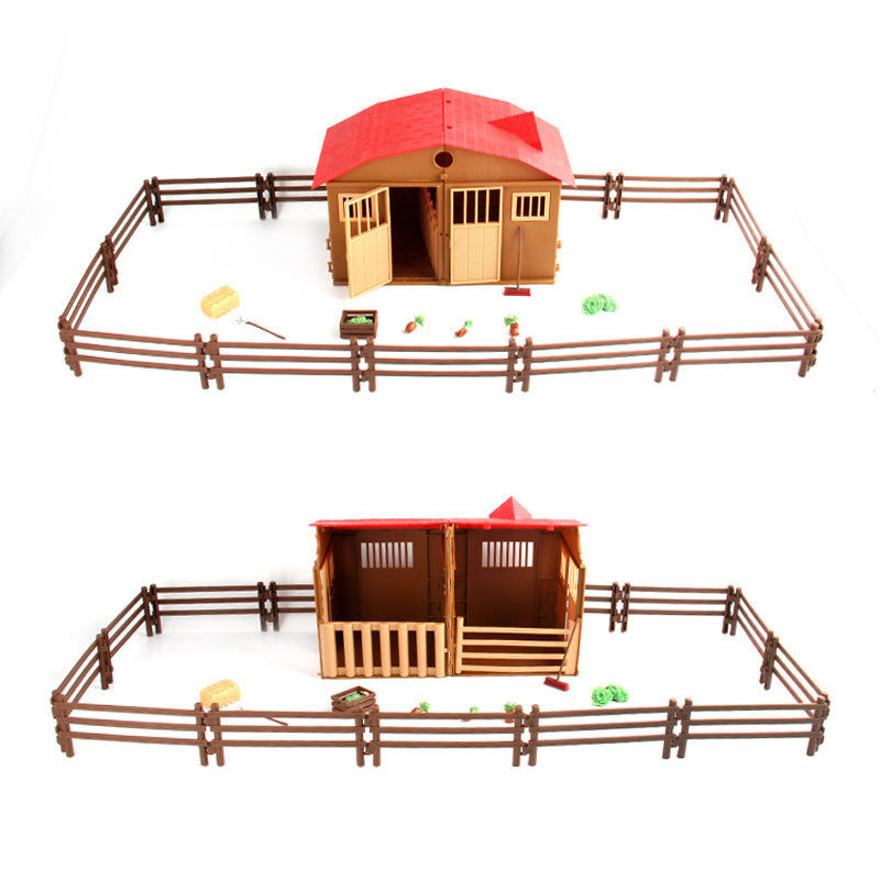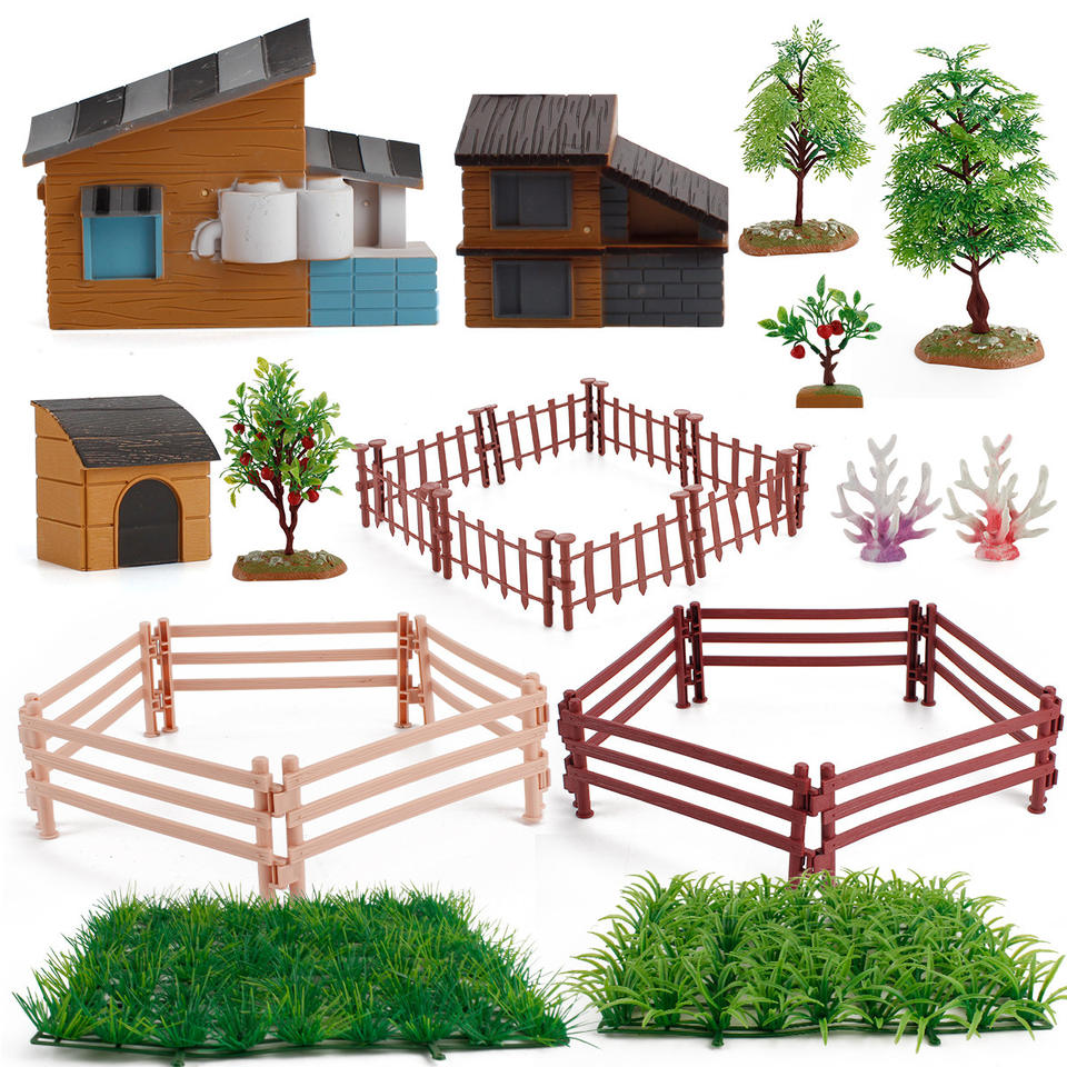 การจำลองฟาร์มปศุสัตว์บ้านห้องโดยสารสัตว์และพืชสิ่งที่แนบมา DIY ประกอบทรายตารางฉากของเล่นรุ่น