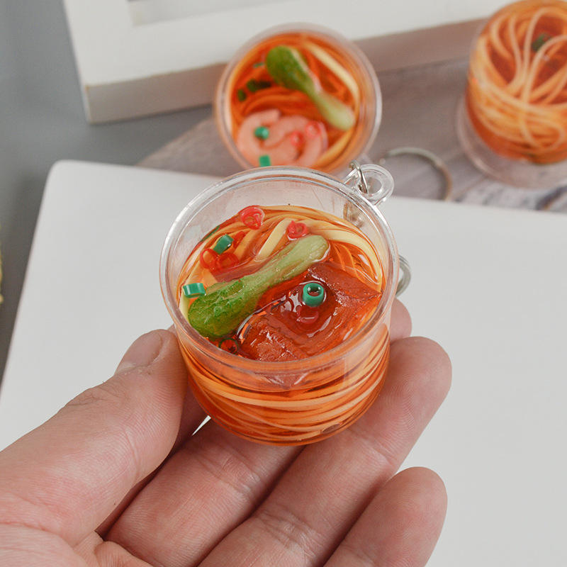 Simulation Food Bucket Noodle Keychain Creative Ramen Italian Bread Pendant Noodle Shrimp Noodle Toy
